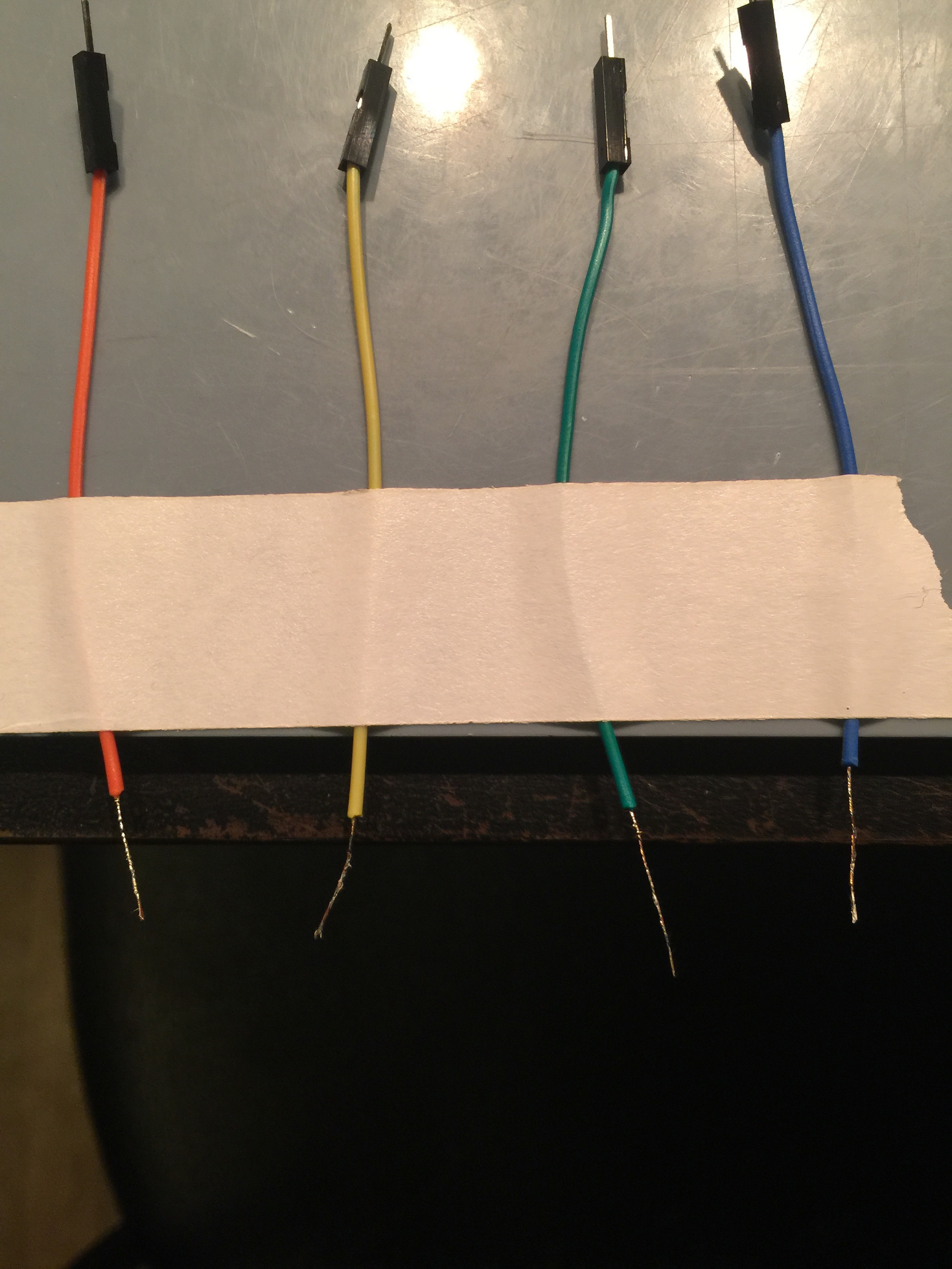 Place one of the wires that we stripped and primed, keep the colors you choose consistent throughout to make things easy for you, in